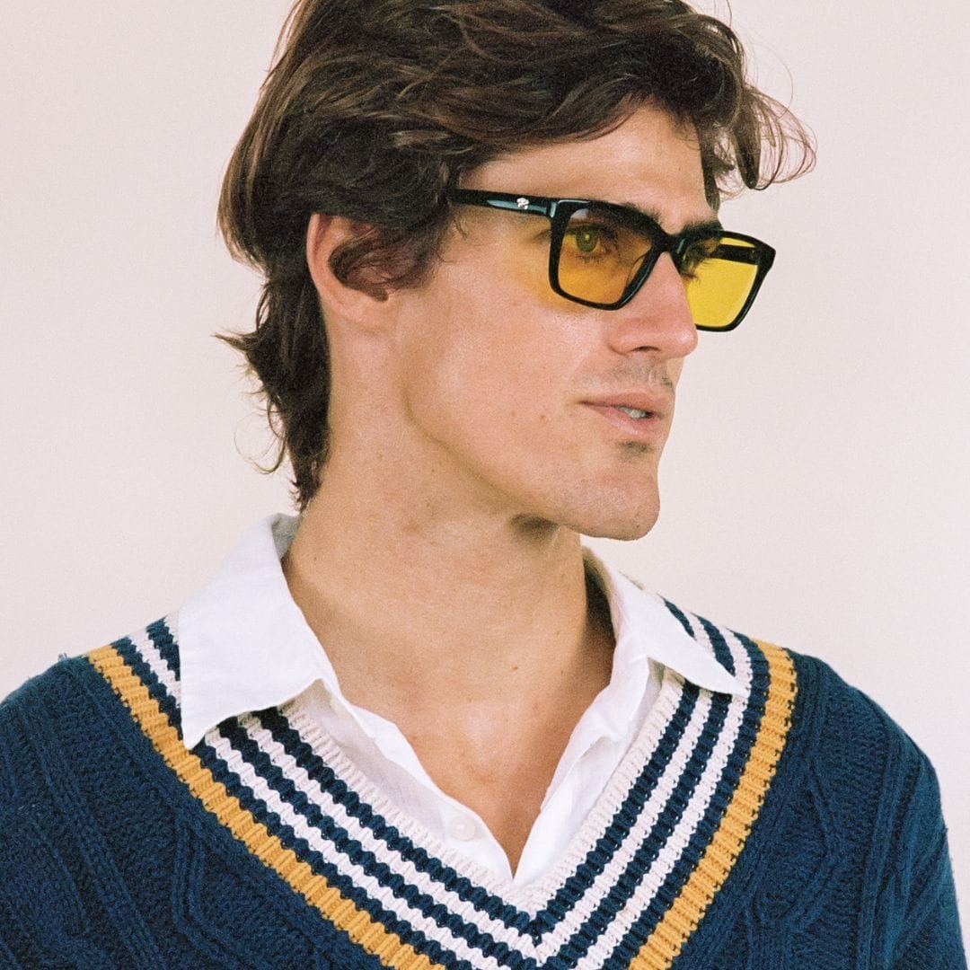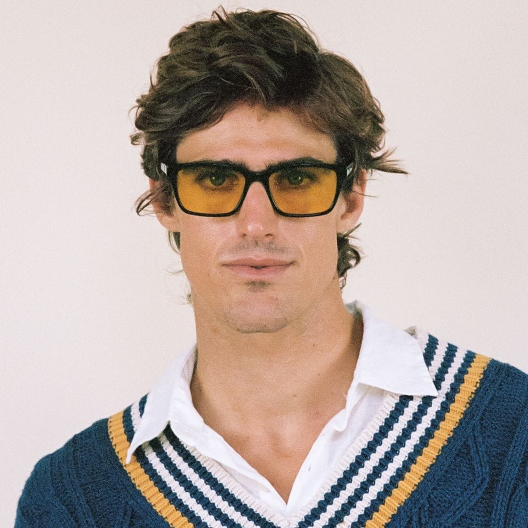 The Look: A sporty rectangular frame with a straight browline, sleek arms, and a clear saddle bridge. This black frame with a subtle glossy-finish is for those looking to make a statement.